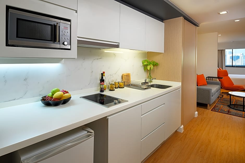 Spice Brasserie på stedet tilbyder en varieret menu med japanske, mellemøstlige, thailandske, asiatiske og internationale retter. Atmosfæren kombinerer familievenlig varme med et moderne præg, hvilket gør det til et indbydende sted at spise med hele gruppen efter en dag med oplevelser i Bangkok. Måltider på stedet kan betales fleksibelt med kontanter og kort som JCB, Visa, American Express, Mastercard og UnionPay.